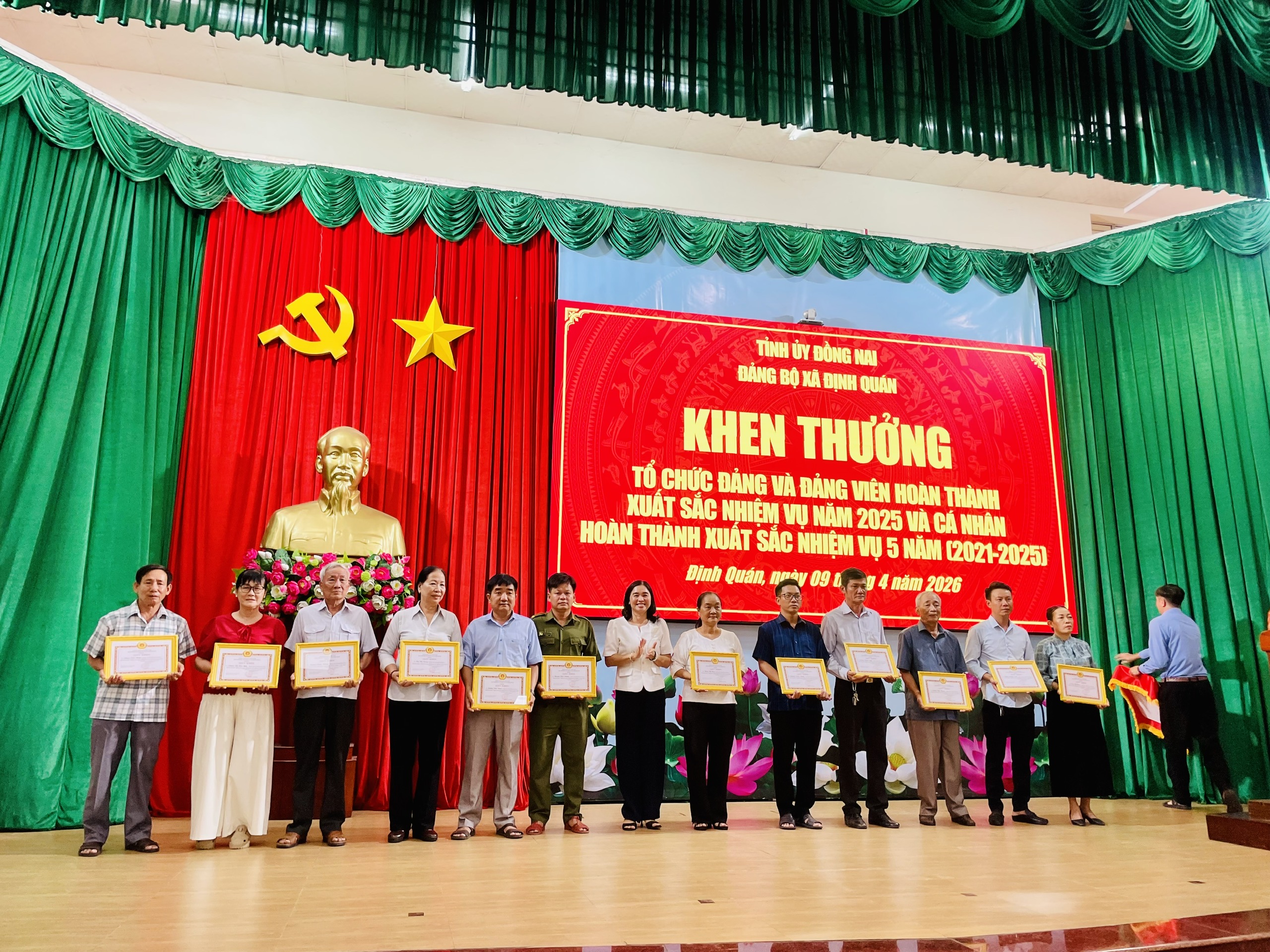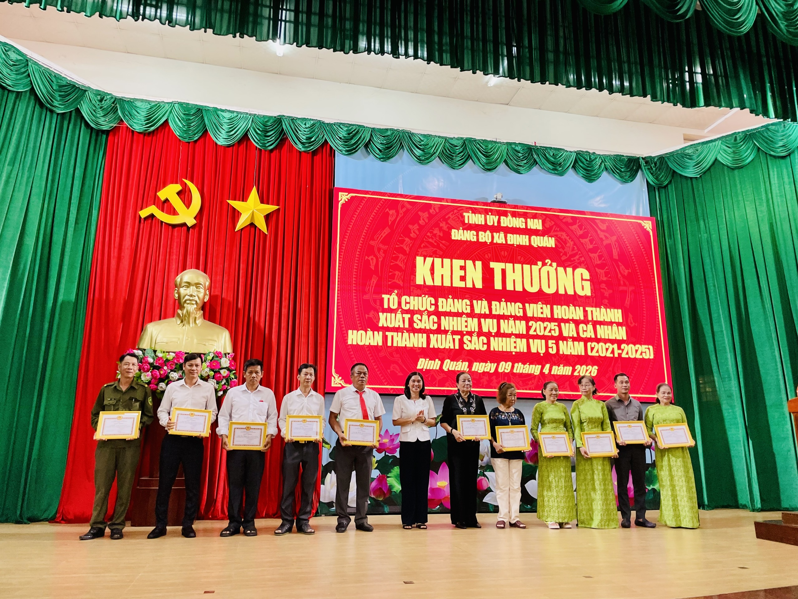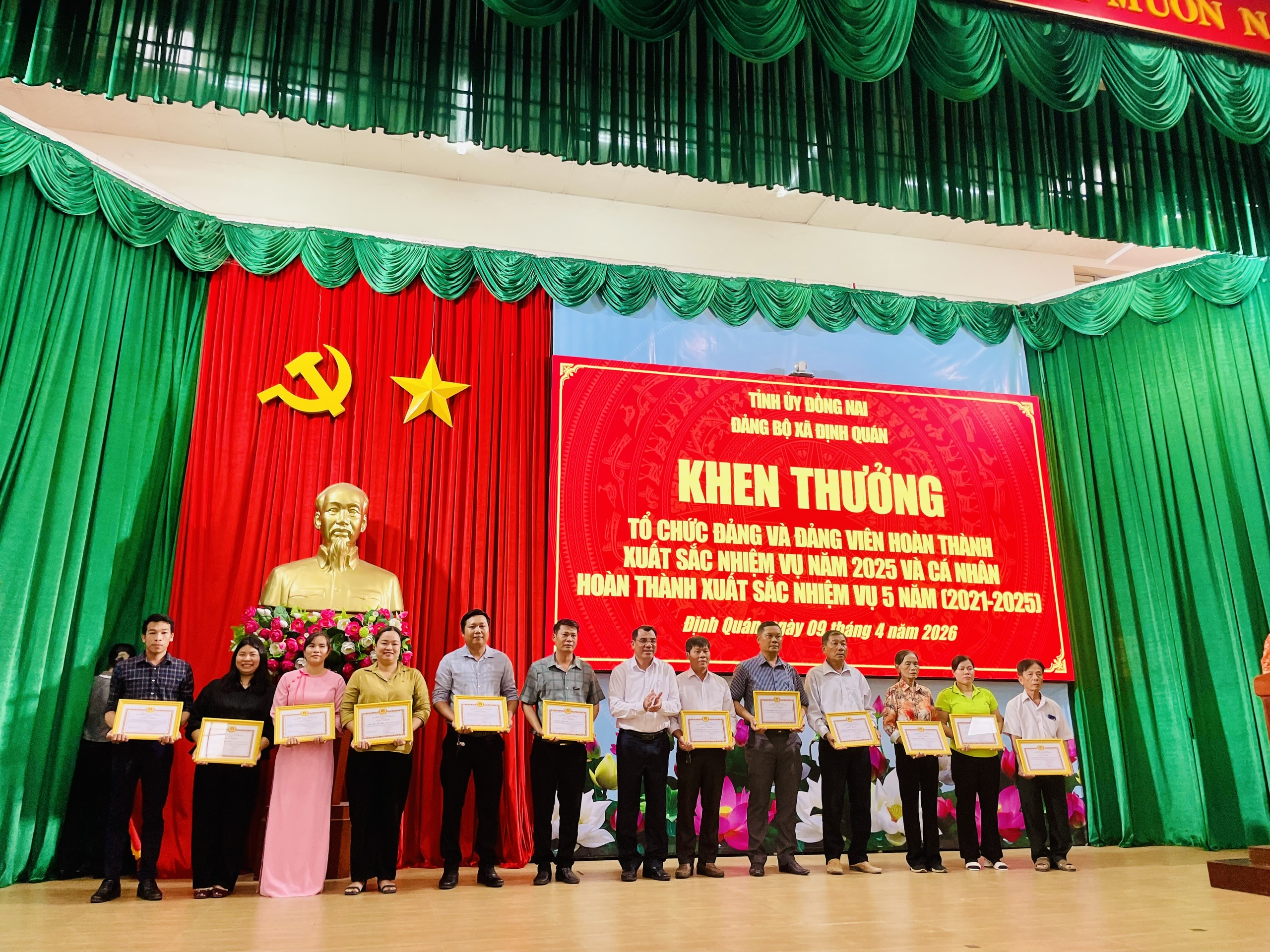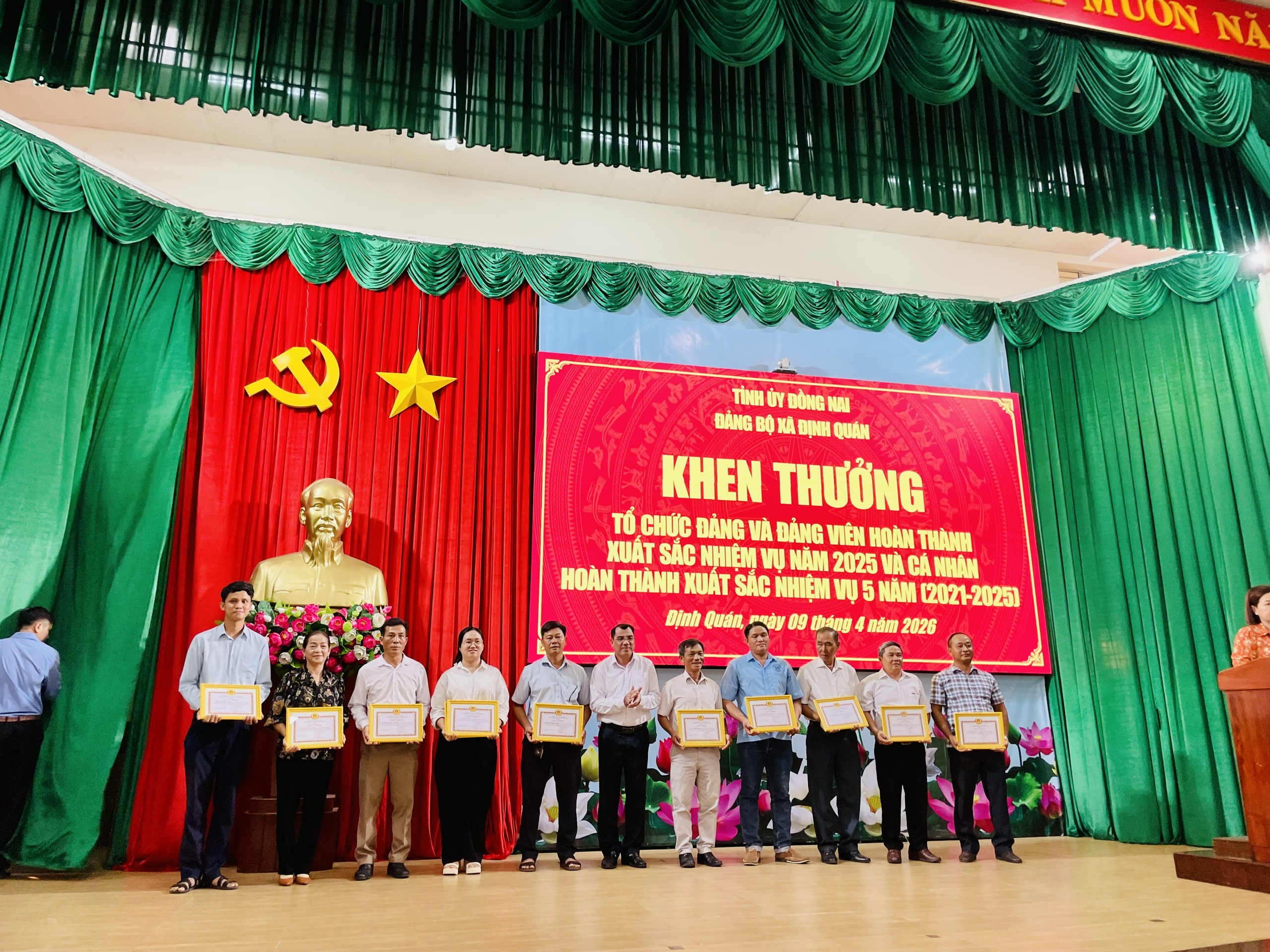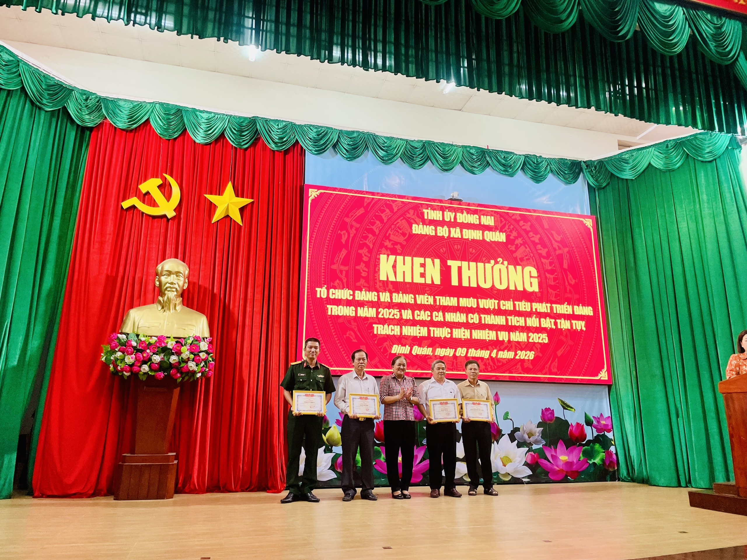 Chiều ngày 09/4/2026, Ban Thường vụ Đảng ủy xã Định Quán đã tổ chức Hội nghị Ban Chấp hành Đảng bộ lần thứ 4 (mở rộng) để đánh giá toàn diện kết quả thực hiện nhiệm vụ Quý I /2026 và thảo luận, thống nhất phương hướng, giải pháp trọng tâm trong Quý II năm 2026 và cho ý kiến các vấn đề thuộc thẩm quyền Ban Chấp hành Đảng bộ xã; đồng thời tổ chức khen thưởng các tập thể, cá nhân có thành tích xuất sắc.