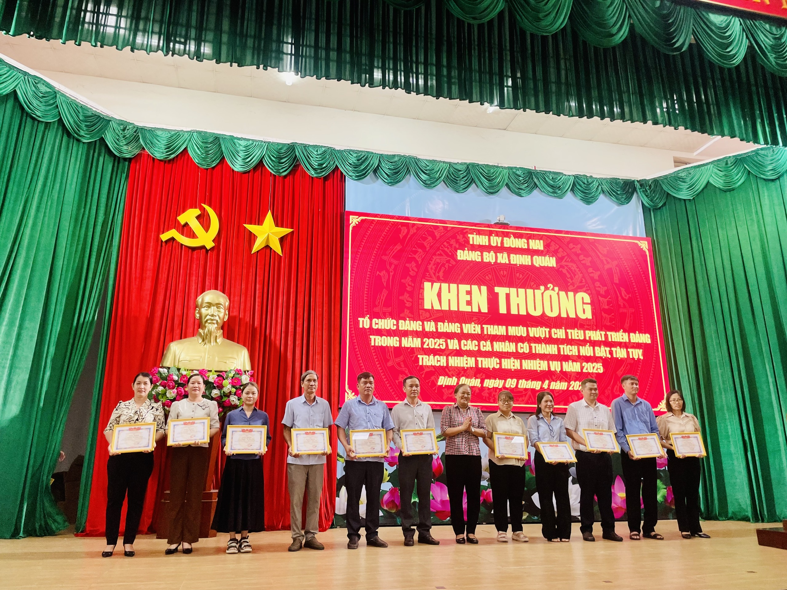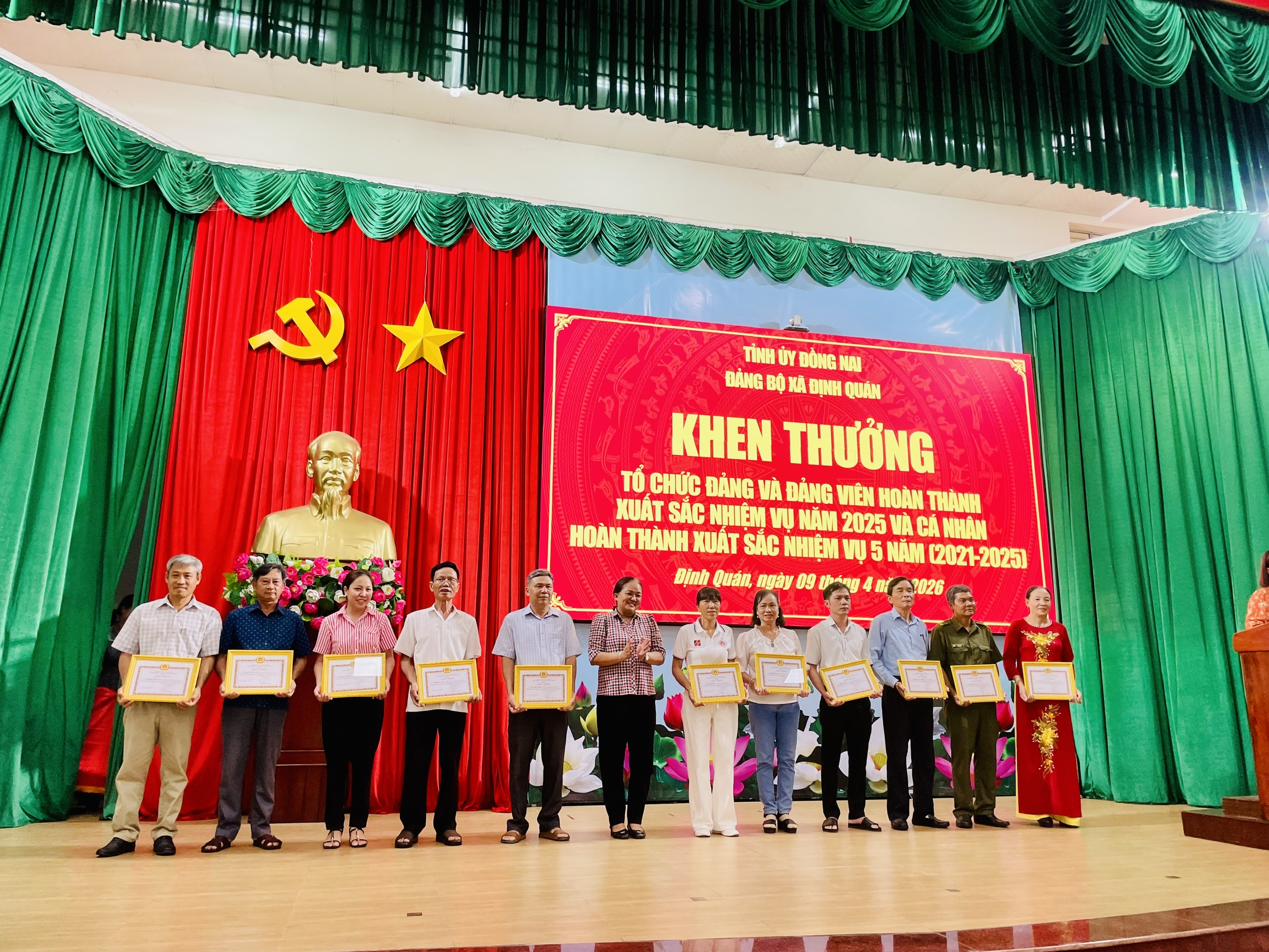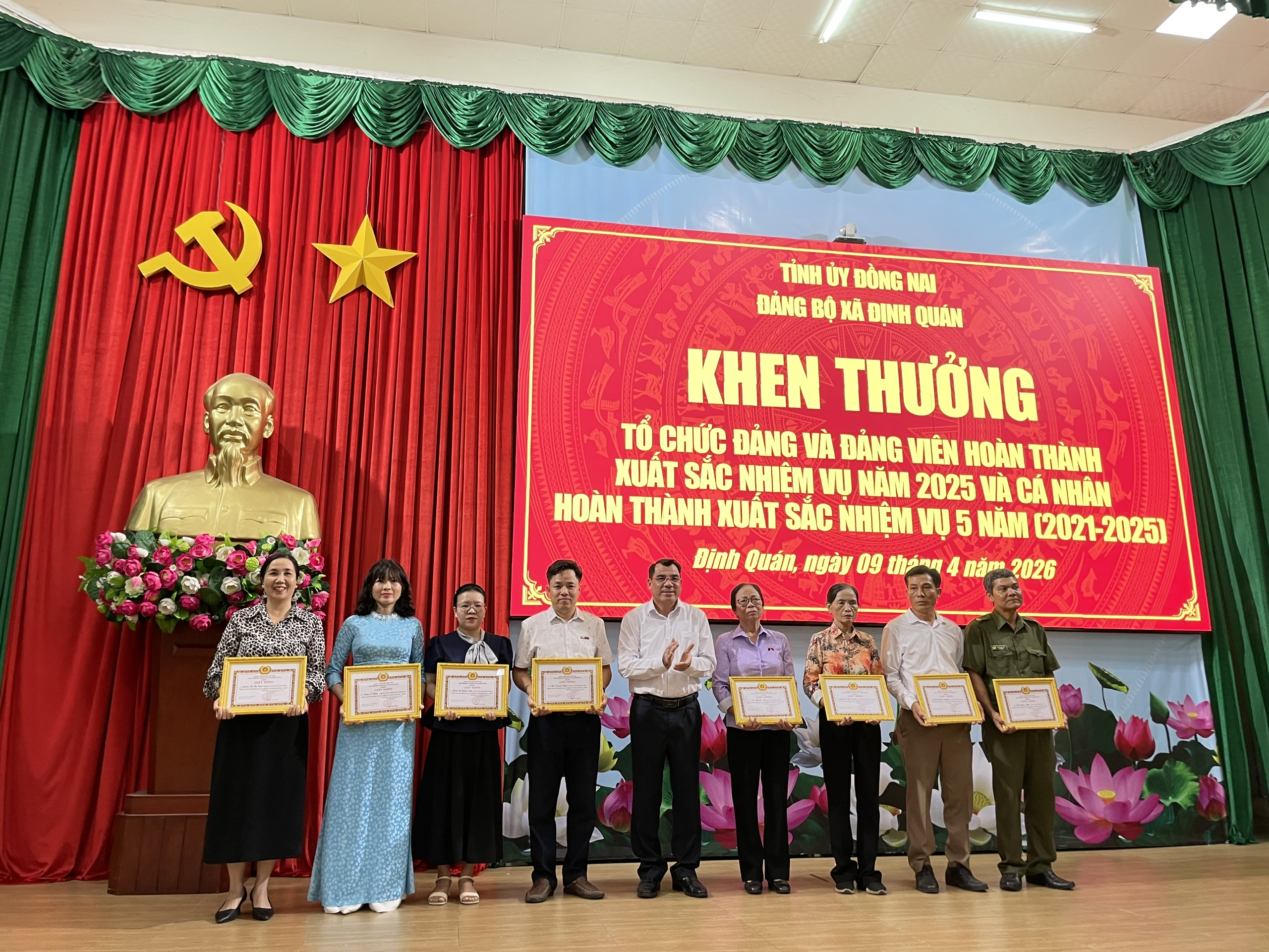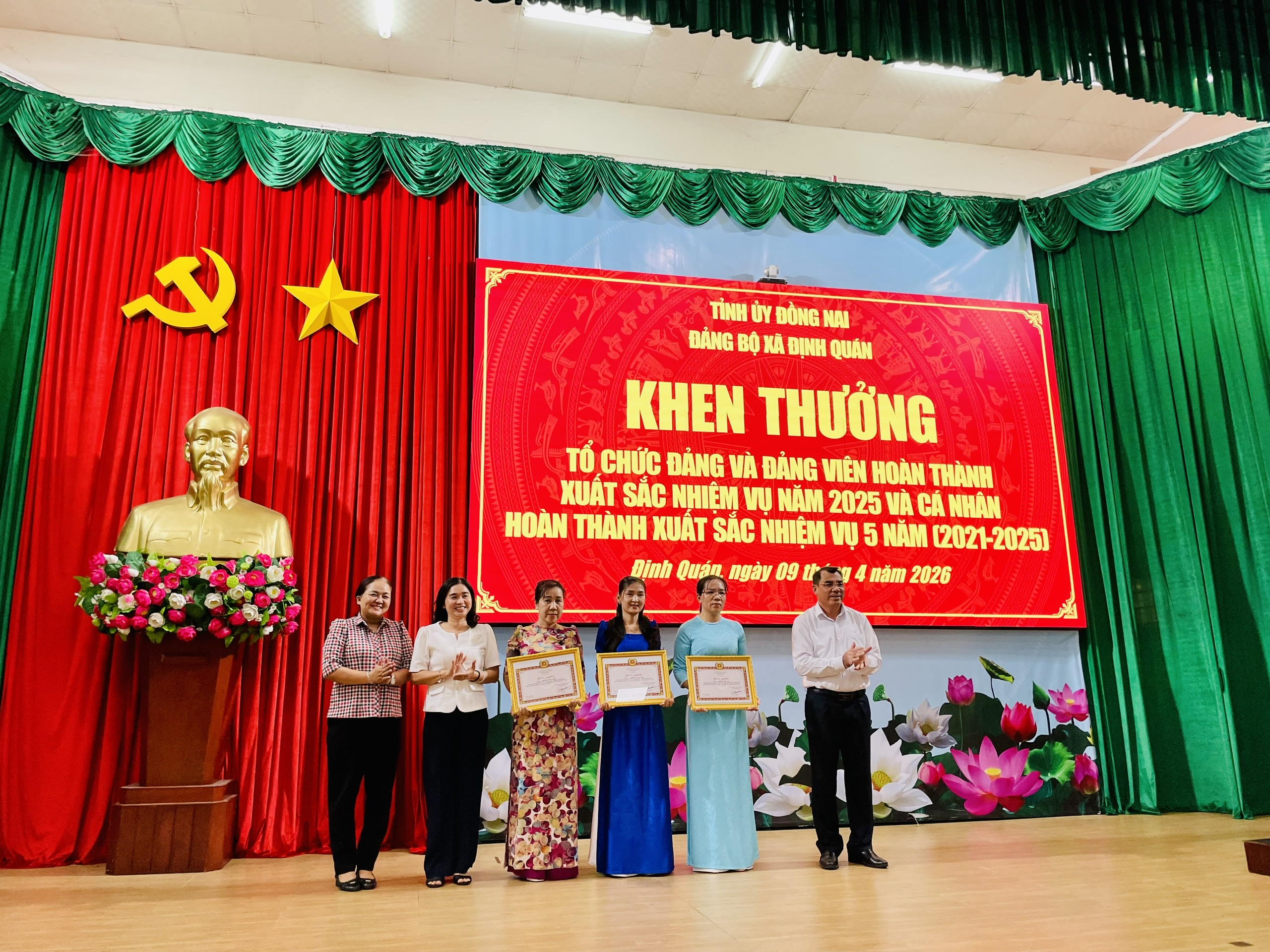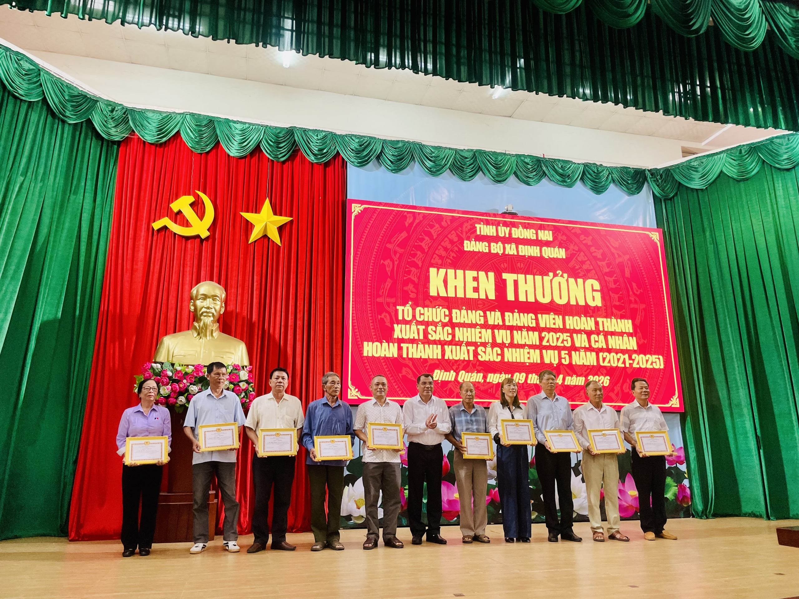 Chiều ngày 09/4/2026, Ban Thường vụ Đảng ủy xã Định Quán đã tổ chức Hội nghị Ban Chấp hành Đảng bộ lần thứ 4 (mở rộng) để đánh giá toàn diện kết quả thực hiện nhiệm vụ Quý I /2026 và thảo luận, thống nhất phương hướng, giải pháp trọng tâm trong Quý II năm 2026 và cho ý kiến các vấn đề thuộc thẩm quyền Ban Chấp hành Đảng bộ xã; đồng thời tổ chức khen thưởng các tập thể, cá nhân có thành tích xuất sắc.