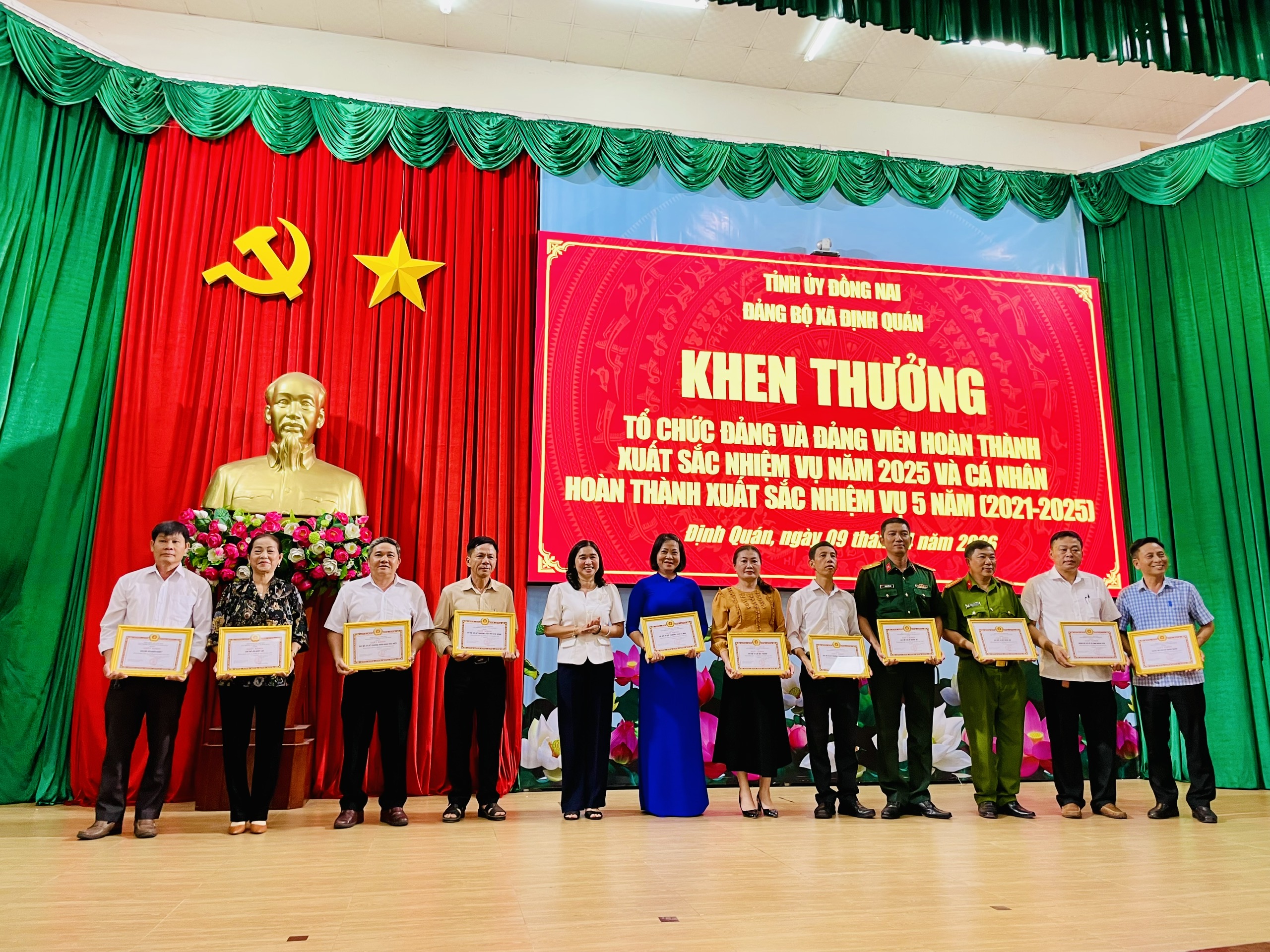 3. Tặng Giấy khen “Chi, đảng bộ hoàn thành xuất sắc nhiệm vụ tiêu biểu năm 2025” của Ban Thường vụ Đảng ủy cho 02 Đảng bộ cơ sở, 07 Chi bộ cơ sở và 03 Chi bộ ấp