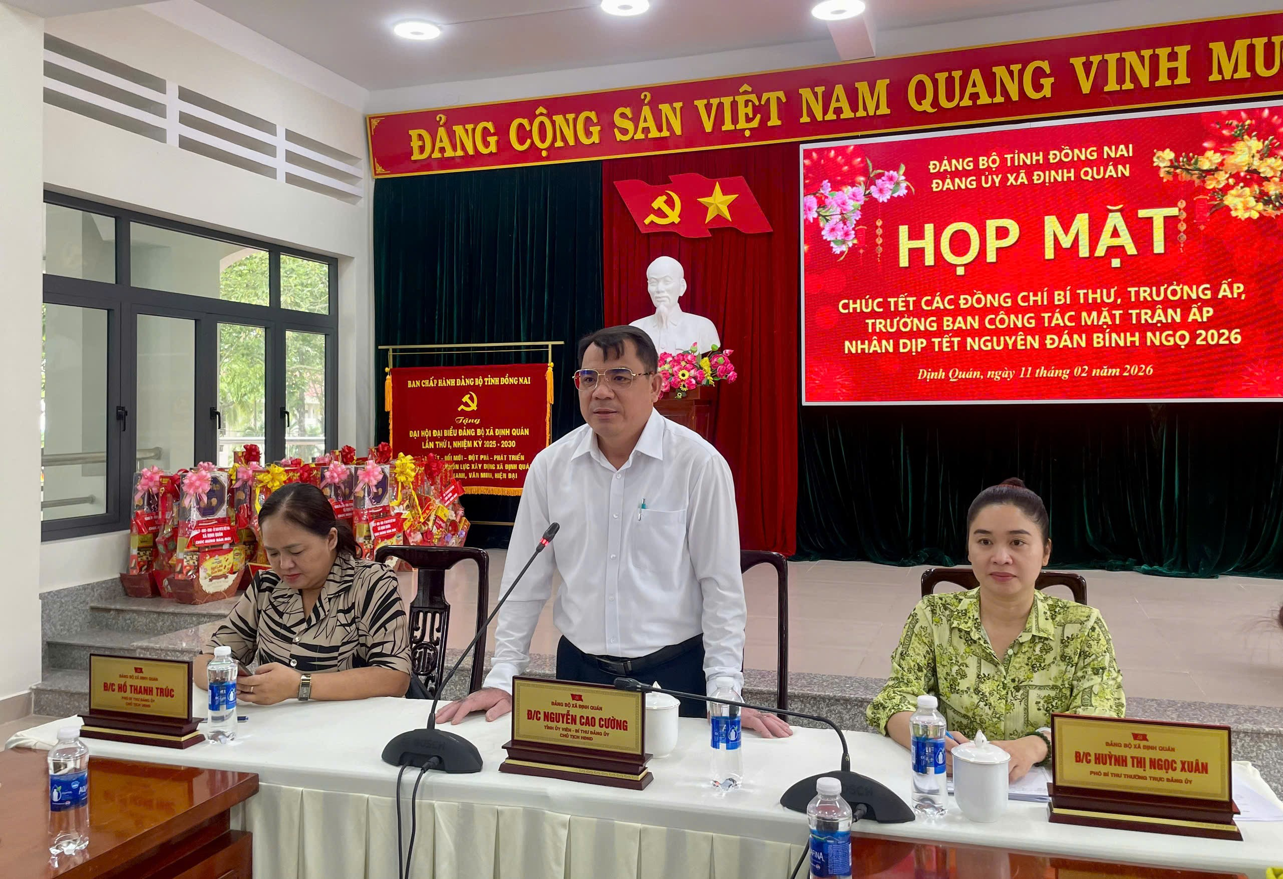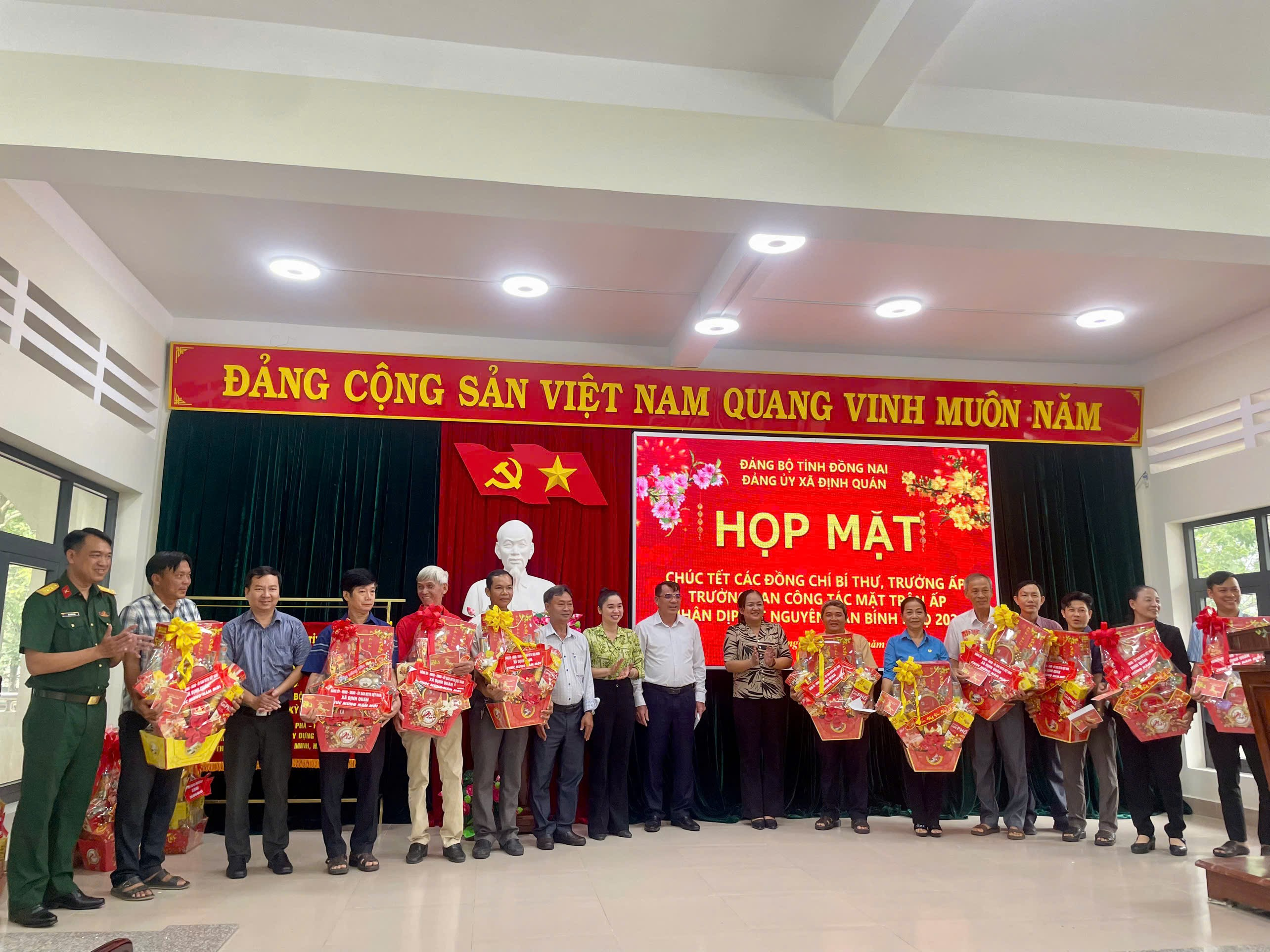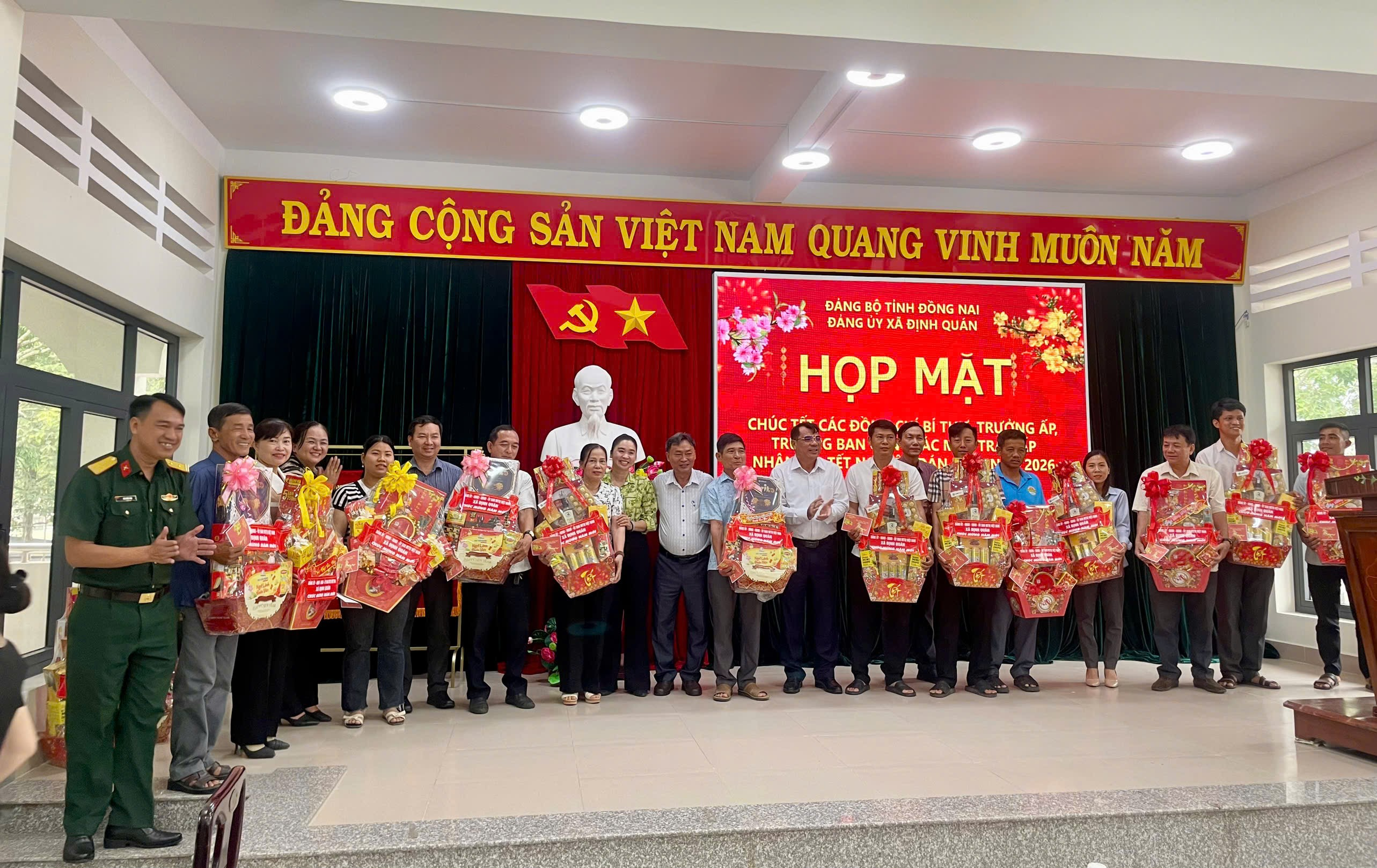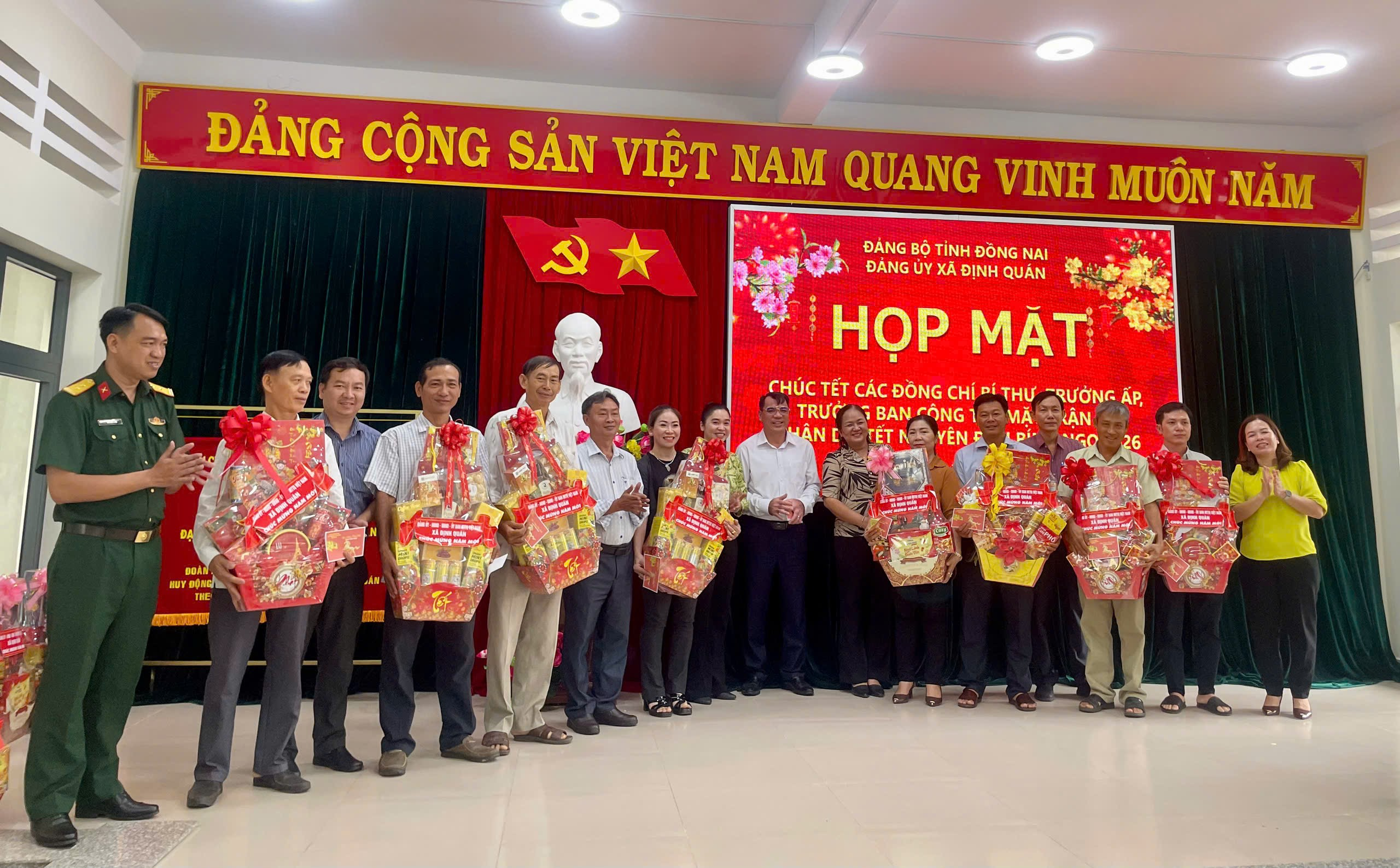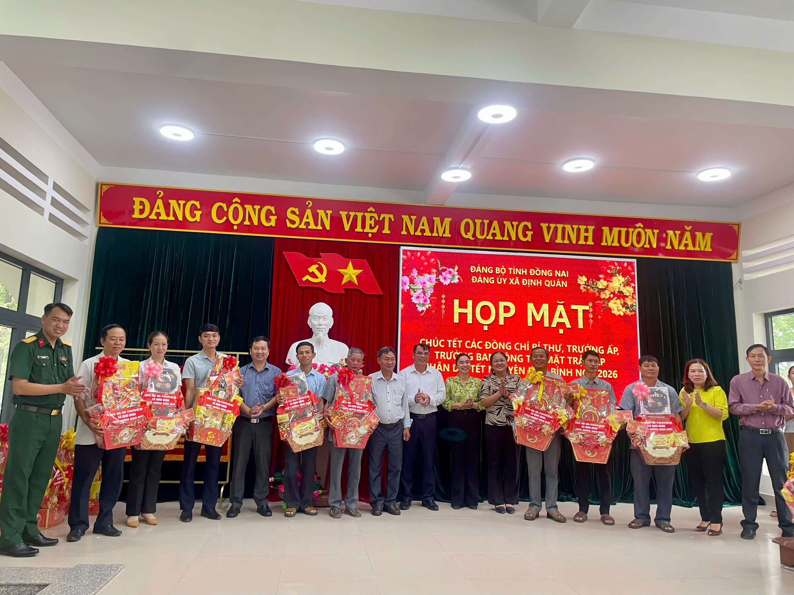 Trong không khí phấn khởi chào đón Xuân Bính Ngọ 2026, sáng ngày 11/02/2026, Đảng ủy xã Định Quán đã tổ chức buổi họp mặt thân mật nhằm chúc Tết các đồng chí Bí thư Chi bộ, Trưởng ấp và Trưởng ban Công tác Mặt trận của các ấp trên địa bàn xã.