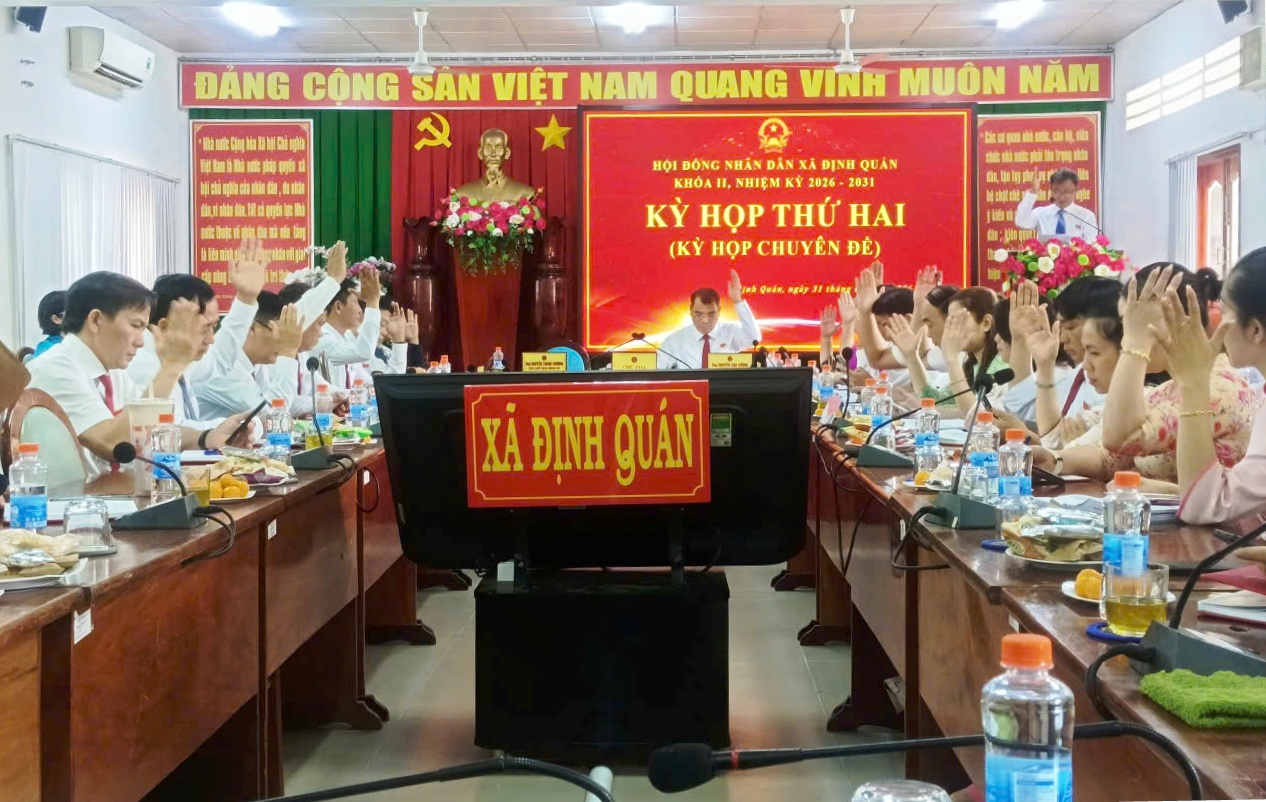 Tại kỳ họp, các đại biểu đã được nghe tờ trình của Thường trực HĐND xã khóa II về Quy chế làm việc của HĐND xã khóa II, nhiệm kỳ 2026-2031, Tờ trình của UBND xã về việc phê chuẩn quyết toán thu – chi ngân sách xã năm 2025 và báo cáo thẩm tra dự thảo Nghị quyết quyết toán thu – chi ngân sách xã Định Quán năm 2025. Với tinh thần khẩn trương, nghiêm túc và trách nhiệm, HĐND xã đã xem xét, thông qua 2 nghị quyết về: Ban hành Quy chế làm việc Hội đồng nhân dân, Thường trực Hội đồng nhân dân, các Ban Hội đồng nhân dân, các Tổ đại biểu Hội đồng nhân dân và đại biểu Hội đồng nhân dân xã khóa II, nhiệm kỳ 2026-2031; Phê chuẩn quyết toán thu – chi ngân sách xã năm 2025.