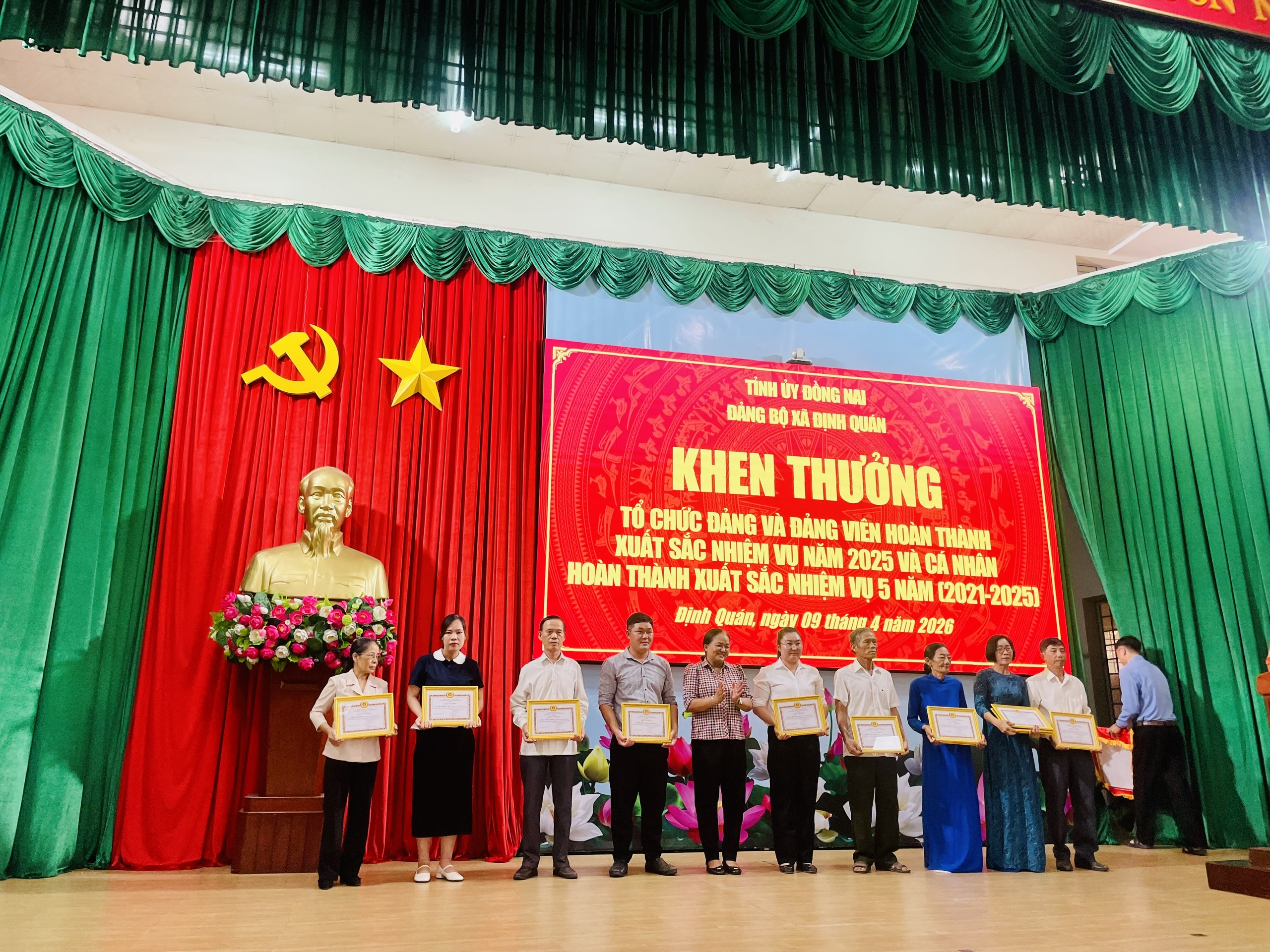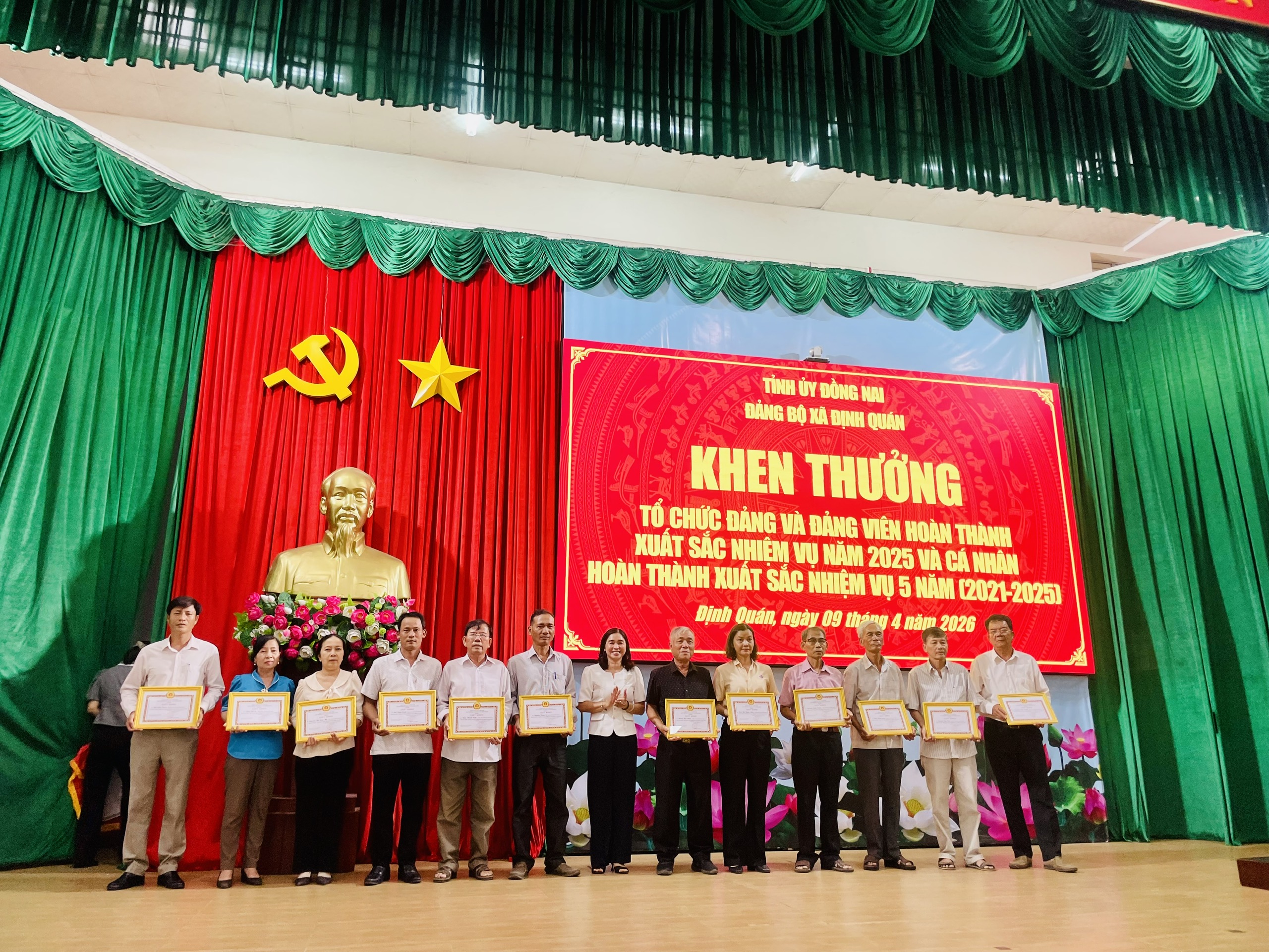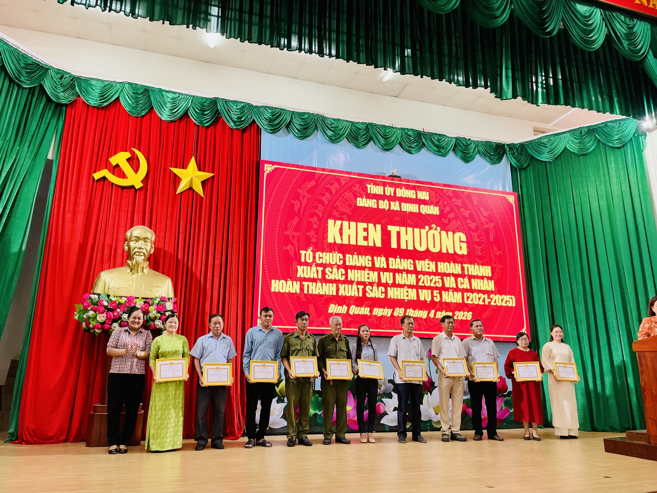 <p style="margin-left:0cm;text-align:justify;">Chiều ngày 09/4/2026, Ban Thường vụ Đảng ủy xã Định Quán đã tổ chức Hội nghị Ban Chấp hành Đảng bộ lần thứ 4 (mở rộng) để đánh giá toàn diện kết quả thực hiện nhiệm vụ Quý I /2026 và thảo luận, thống nhất phương hướng, giải pháp trọng tâm trong Quý II năm 2026 và cho ý kiến các vấn đề thuộc thẩm quyền Ban Chấp hành Đảng bộ xã; đồng thời tổ chức khen thưởng các tập thể, cá nhân có thành tích xuất sắc.</p>