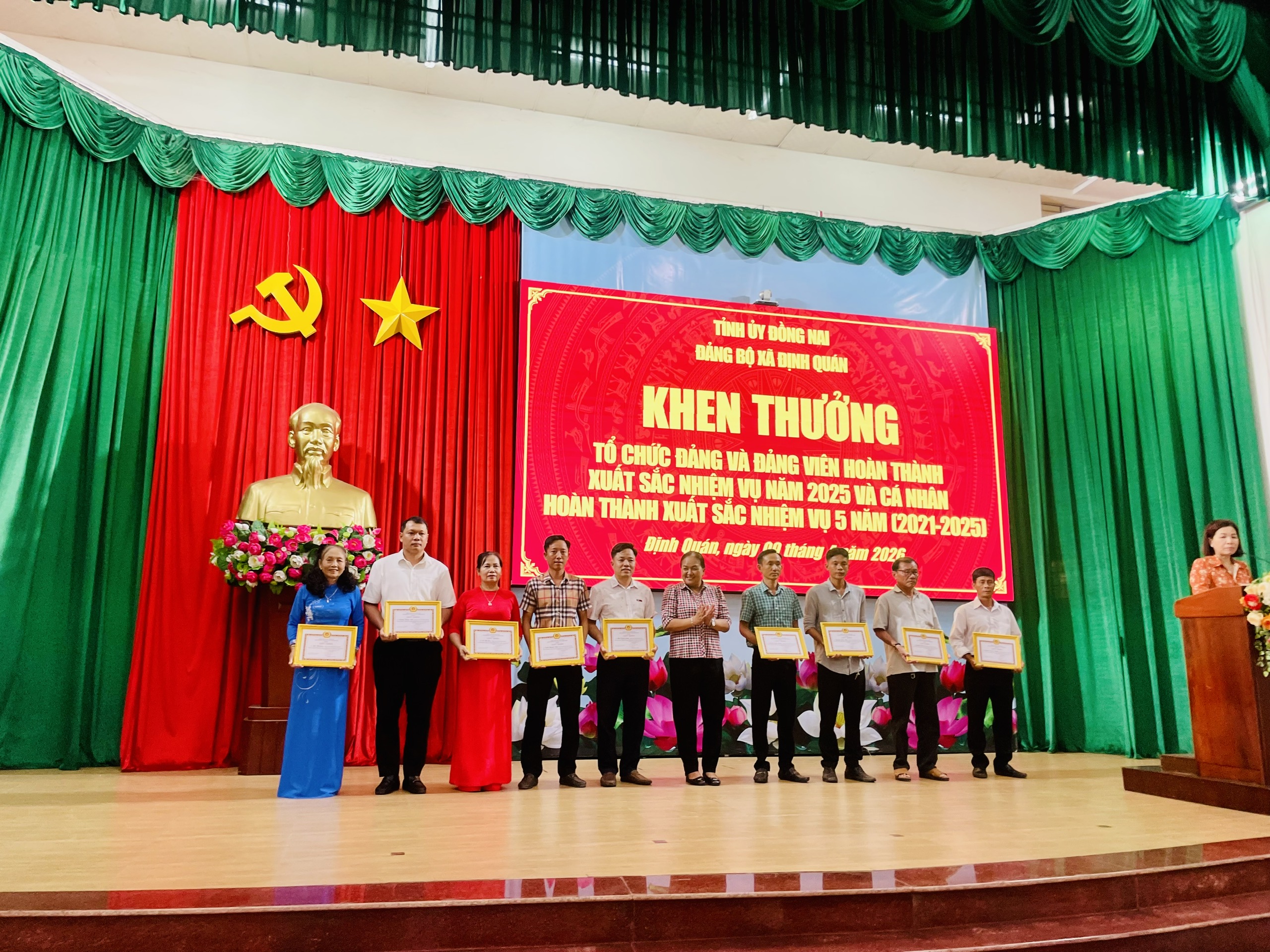 <p style="margin-left:0cm;text-align:justify;">3. Tặng Giấy khen “Chi, đảng bộ hoàn thành xuất sắc nhiệm vụ tiêu biểu năm 2025” của Ban Thường vụ Đảng ủy cho 02 Đảng bộ cơ sở, 07 Chi bộ cơ sở và 03 Chi bộ ấp</p>