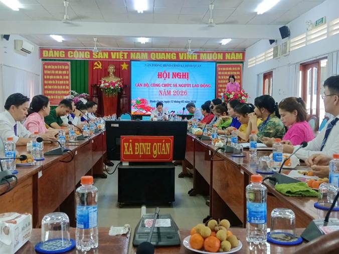 Ngày 12/02/2026, Văn phòng HĐND và UBND xã Định Quán đã tổ chức Hội nghị cán bộ, công chức và người lao động năm 2026. Hội nghị nhằm đánh giá kết quả thực hiện nhiệm vụ năm 2025 và đề ra phương hướng, nhiệm vụ trọng tâm năm 2026.