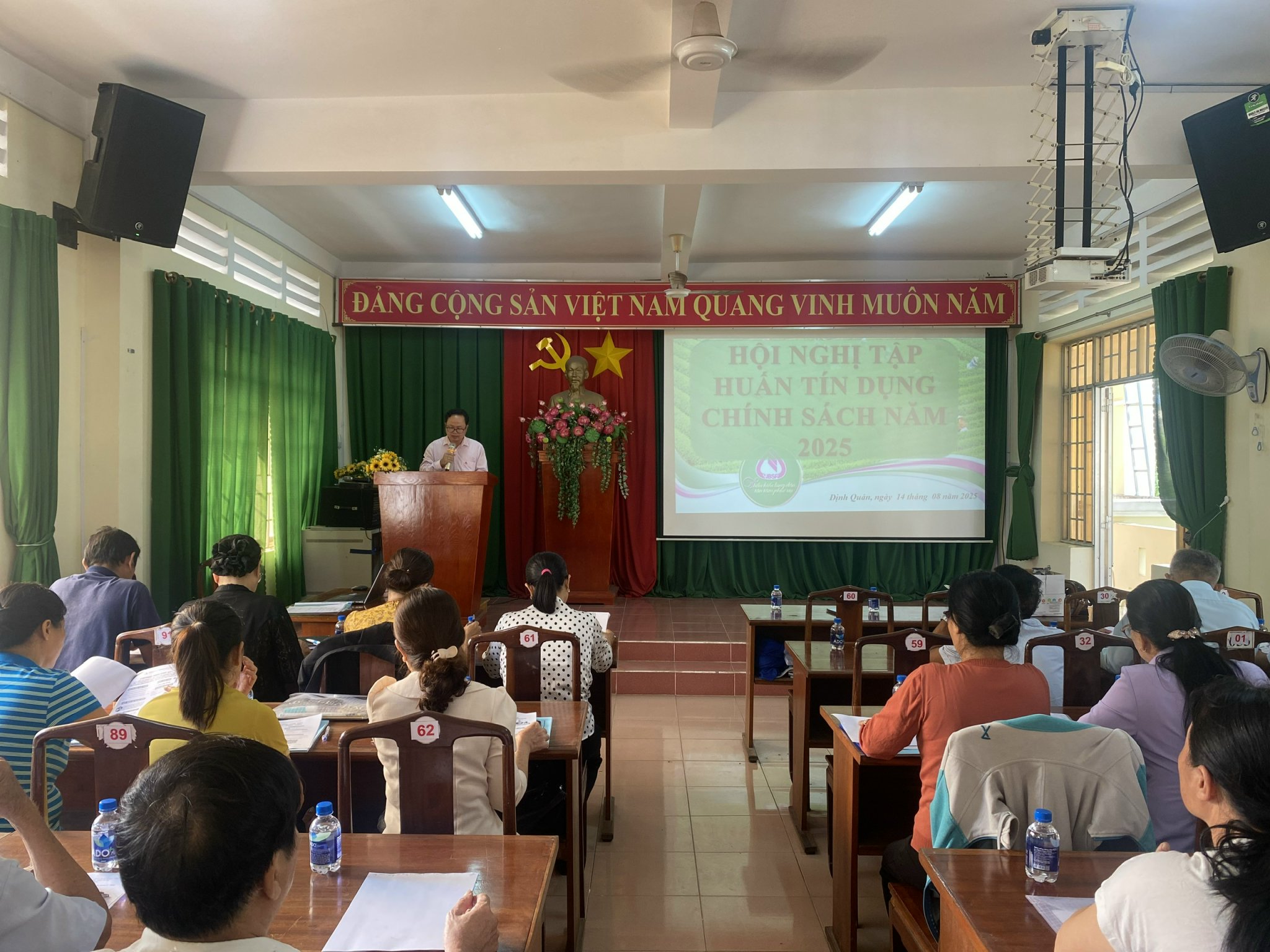 NHCSXH Định Quán tiếp tục chuỗi tập huấn, nâng cao năng lực cho 117 Tổ Tiết kiệm và Vay vốn tại 2 xã Phú Vinh và xã Định Quán.Sáng ngày 20 tháng 8 năm 2025, tại Trung tâm Chính trị xã Định Quán, Phòng giao dịch Ngân hàng Chính sách xã hội (NHCSXH) Định Quán đã tổ chức một chương trình tập huấn nghiệp vụ quy mô lớn, quy tụ 117 cán bộ ban quản lý của các Tổ Tiết kiệm và Vay vốn (TK&VV) đến từ hai địa bàn xã Phú Vinh và xã Định Quán.
