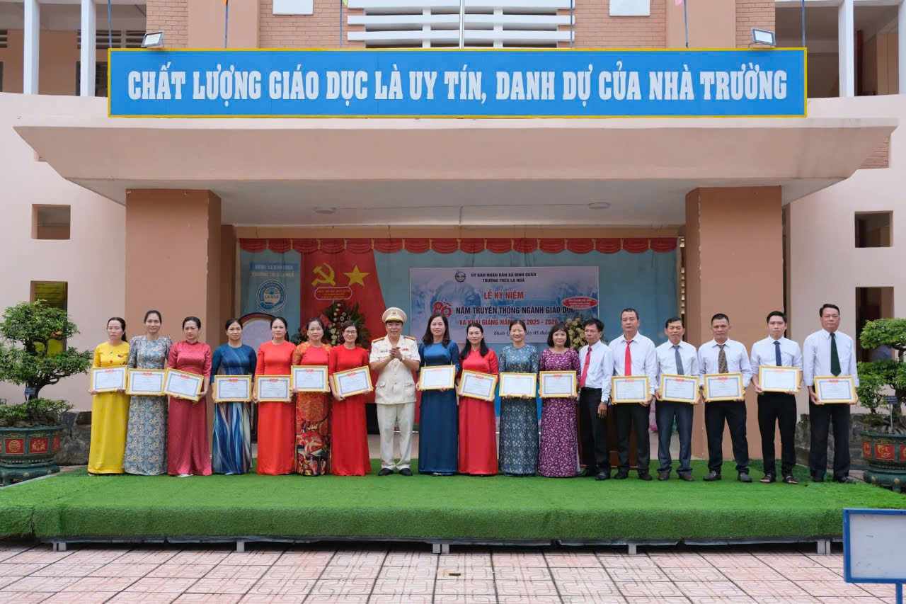 Cán bộ, giáo viên trường THCS La Ngà được khen thưởng tại lễ khai giảng năm học mới 2025-2026
