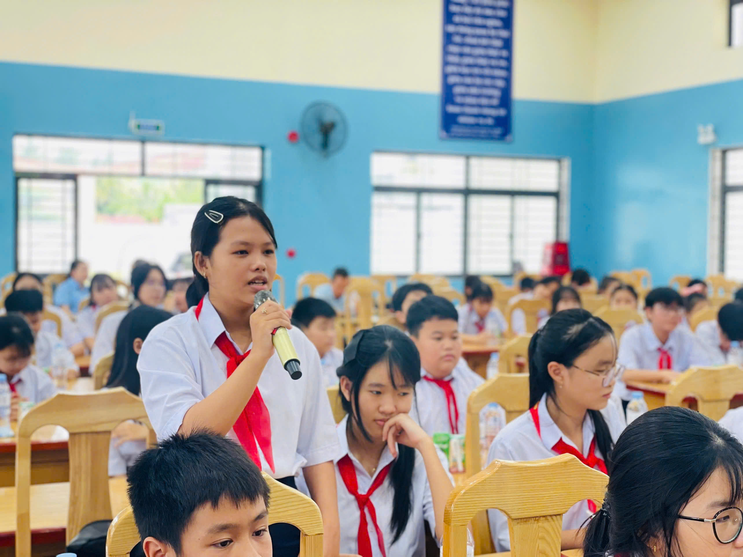 Đại diện các ban ngành xã đã trực tiếp lắng nghe, giải đáp và định hướng giúp các em nâng cao kỹ năng sống, tự tin thực hiện quyền và trách nhiệm của mình.