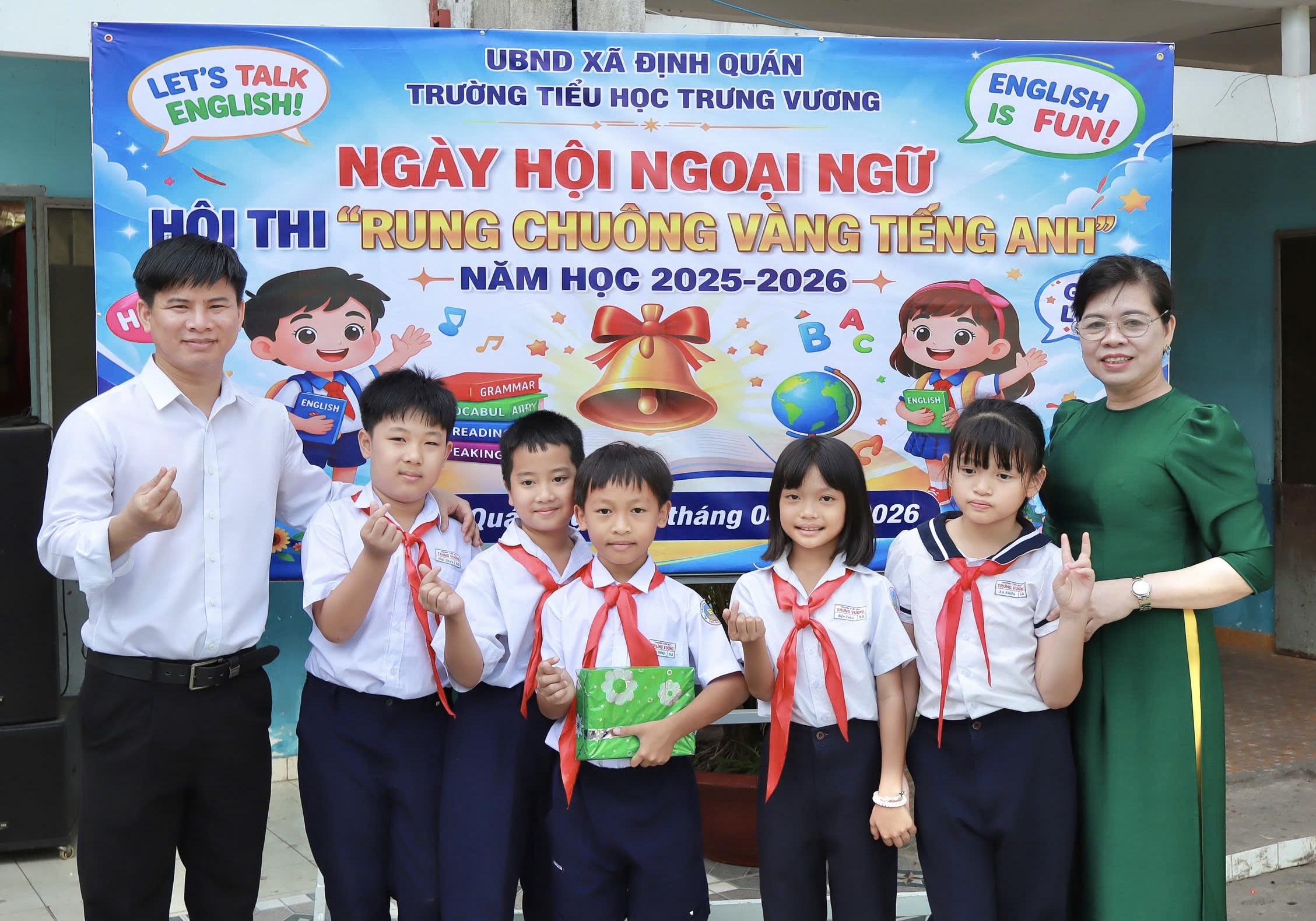 Trong không khí oi ả của cao điểm nắng nóng, “Ngày hội Ngoại ngữ - Hội thi Rung Chuông Vàng tiếng Anh”, năm học 2025 – 2026 tại trường tiểu học Trưng Vương càng nóng hơn bao giờ hết. Gần 70 thí sinh nhí, thuộc 3 khối lớp 3,4 và 5 đang hướng về một mục tiêu duy nhất: Chiếc Chuông Vàng danh giá. Trên tinh thần “Học mà chơi - Chơi mà học”, sân chơi trí tuệ này đòi hỏi thí sinh phải hội đủ cả 4 kỹ năng: Nghe, nói, đọc, viết. Dưới áp lực thời gian của mỗi câu hỏi, các em không chỉ phải củng cố vốn từ vựng, ngữ pháp mà còn cần một phản xạ nghe - hiểu cực nhanh.