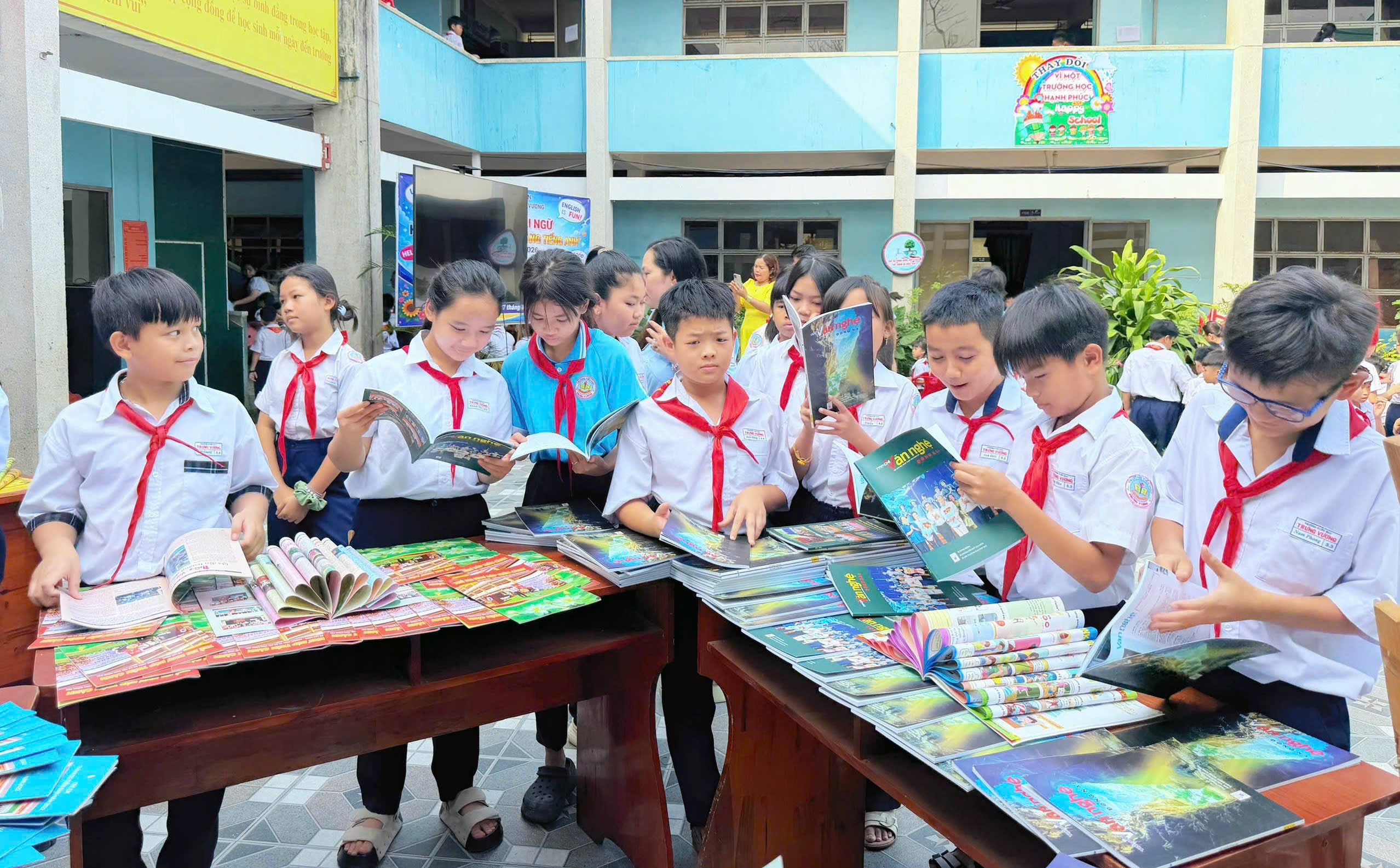 Điểm nhấn của ngày hội là khu vực trưng bày hơn 500 bản tạp chí với chủ đề “Giải phóng miền Nam 30/4”. Đây là nguồn tư liệu quý giá giúp các em bồi đắp lòng yêu nước và tự hào dân tộc. Được biết, ngoài ra thư viện nhà trường hiện có trên 6.000 bản sách, sẵn sàng đáp ứng nhu cầu học tập và nghiên cứu của học sinh, giáo viên toàn trường.