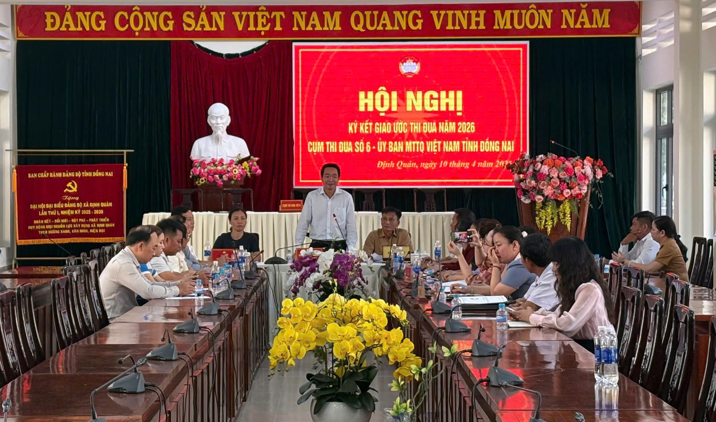 Phát biểu tại hội nghị, Phó chủ tịch phụ trách Hội Nông dân tỉnh Đồng Nai Nguyễn Văn Giang ghi nhận và đánh giá cao tinh thần chủ động, trách nhiệm của các đơn vị trong cụm. Đồng thời, đề nghị các đơn vị tiếp tục đẩy mạnh công tác tuyên truyền, đổi mới phương thức hoạt động, phát huy tinh thần đoàn kết, thống nhất, bám sát nhiệm vụ chính trị của địa phương. Tích cực động viên các tầng lớp nhân dân thi đua lao động sản xuất tham gia phát triển kinh tế; tham gia bảo vệ quyền, lợi ích hợp pháp chính đáng của nhân dân, nâng cao hiệu quả công tác giám sát phản biện xã hội; nâng cao chất lượng cuộc vận động, các phong trào thi đua theo hướng sâu rộng, thiết thực; nâng cao năng lực đội ngũ cán bộ mặt trận các cấp; đẩy mạnh chuyển đổi số trong hoạt động Mặt trận… góp phần thực hiện thắng lợi nhiệm vụ chính trị của tỉnh Đồng Nai năm 2026.