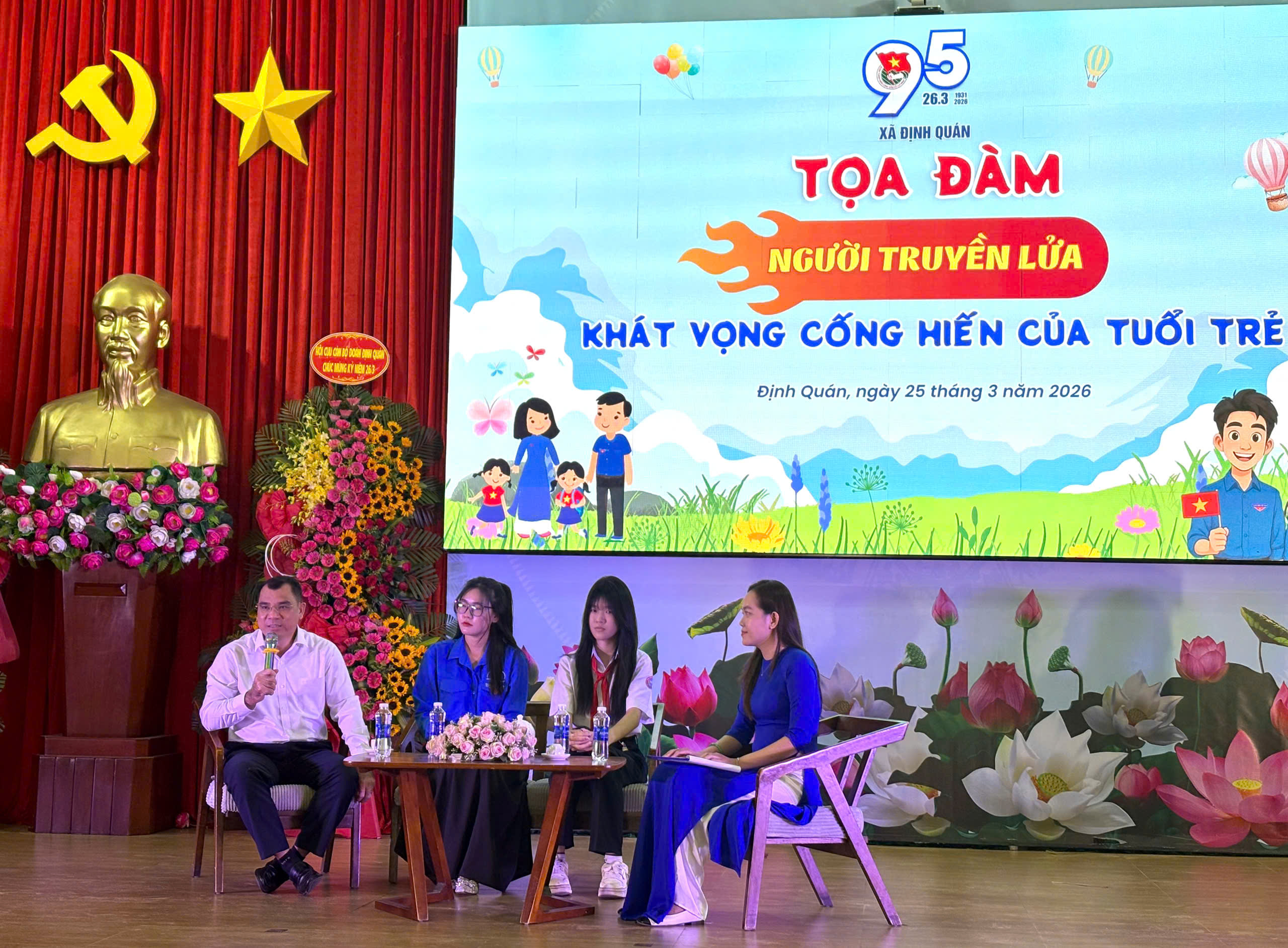 Trong khuôn khổ chương trình, Đoàn xã đã tổ chức tọa đàm giữa các thế hệ cán bộ đoàn với chủ đề “Người truyền lửa – khát vọng cống hiến của tuổi trẻ” với mục đích gặp gỡ, giao lưu, chia sẻ những câu chuyện, kỷ niệm và kinh nghiệm quý báu trong quá trình công tác từ những tấm gương đã và đang cống hiến cho công tác Đoàn và phong trào thanh thiếu nhi.